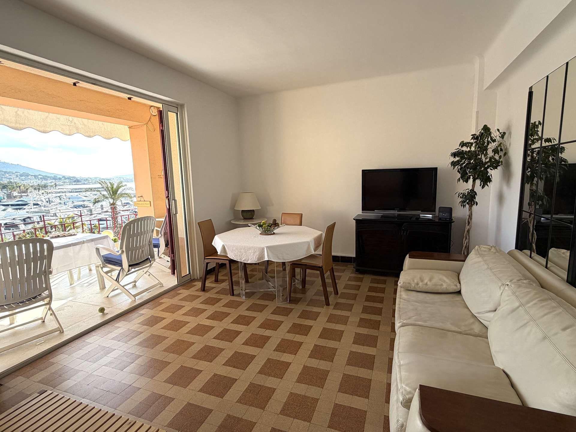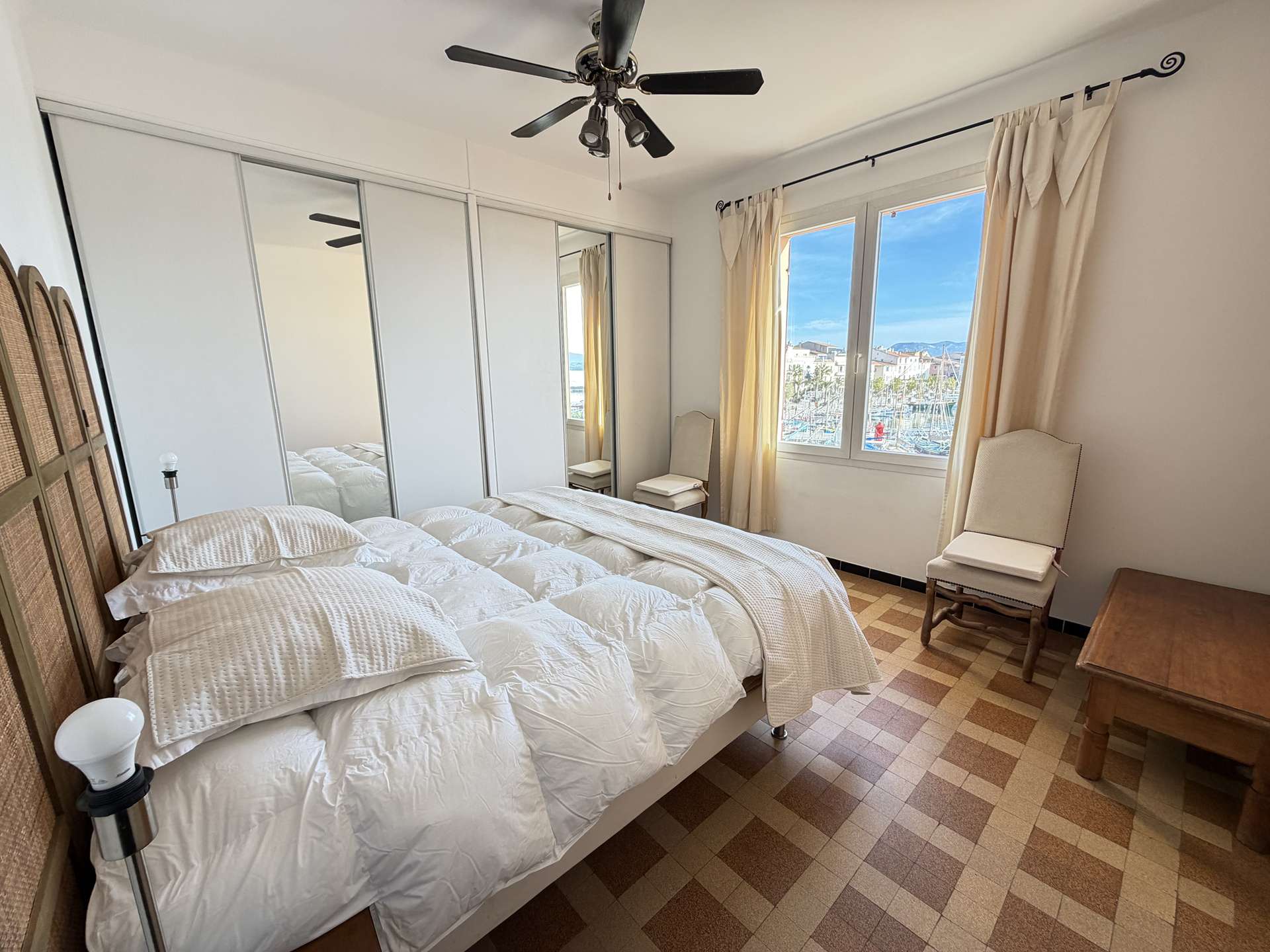 Die Wohnung besteht aus einem Wohnzimmer mit offener Küche, die auf eine schöne 10 m² große Terrasse mit atemberaubendem Meerblick auf den Hafen führt. Plancha steht für Ihre Sommermahlzeiten mit Blick auf das Meer zur Verfügung.