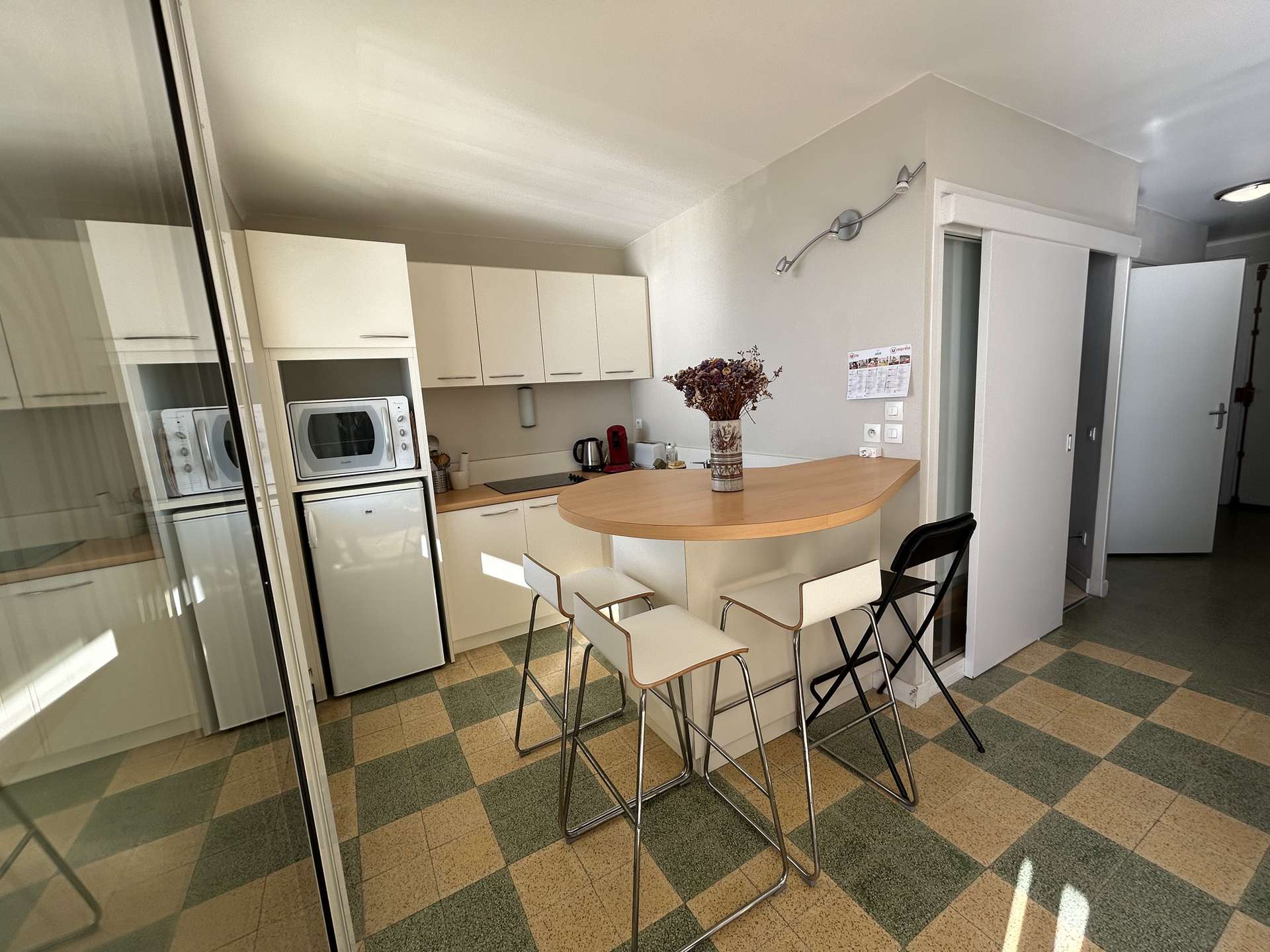 SANARY BORD DE MER – LES BAUX – In der Nähe von Geschäften, dem Strand und dem Stadtzentrum von Sanary entdecken Sie diese 30 m² große 2-Zimmer-Wohnung (Schlafzimmer-Kabine) mit einer 8 m² großen Terrasse mit Blick auf das Meer.