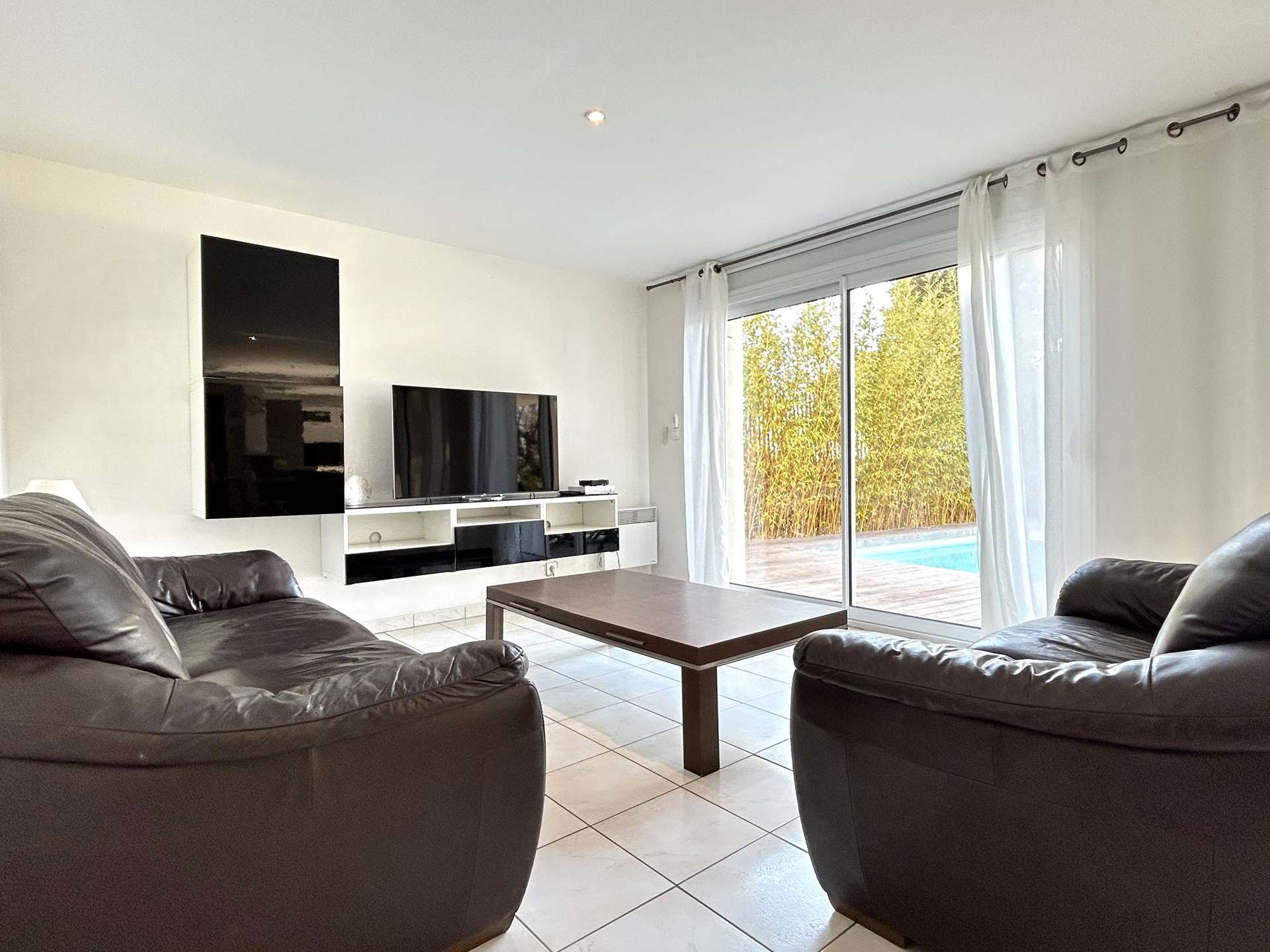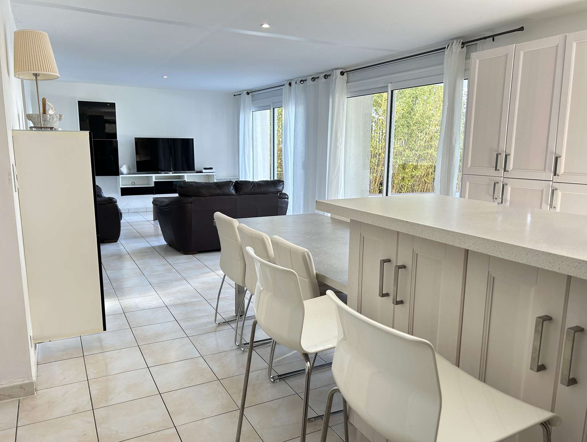 Die 83 m² große Wohnung besteht aus einer Eingangshalle, einer Einbauküche, einem großen Wohn-Esszimmer mit Schlafsofa, alles öffnet sich zu einer schönen Terrasse und einem Garten mit einem 7,5 m x 4 m großen Swimmingpool mit Meerblick.