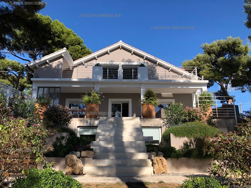 SANARY – PORTISSOL/CENTRE, dans un calme absolu et en situation très privilégiée, entre le port de Sanary et la plage de Portissol, magnifique villa d’Architecte climatisée, entièrement restaurée de 280m2, 7 chambres et 3 salles d’eau en position dominante. Ses multiples terrasses (240 m2 au total) offrent une vue mer spectaculaire sur la baie de Sanary.Terrain de pétanque. Classée meublé de tourisme 4*
