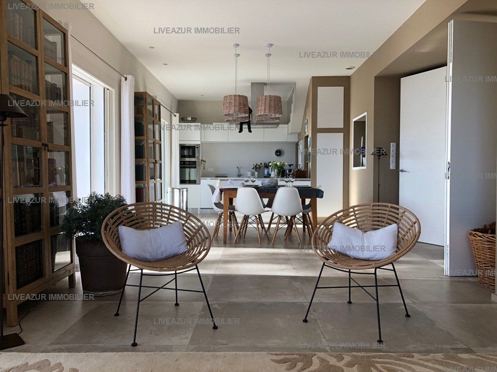 La villa a été repensée de manière à mettre en valeur ses très beaux volumes et sa situation géographique très particulière face à la mer.