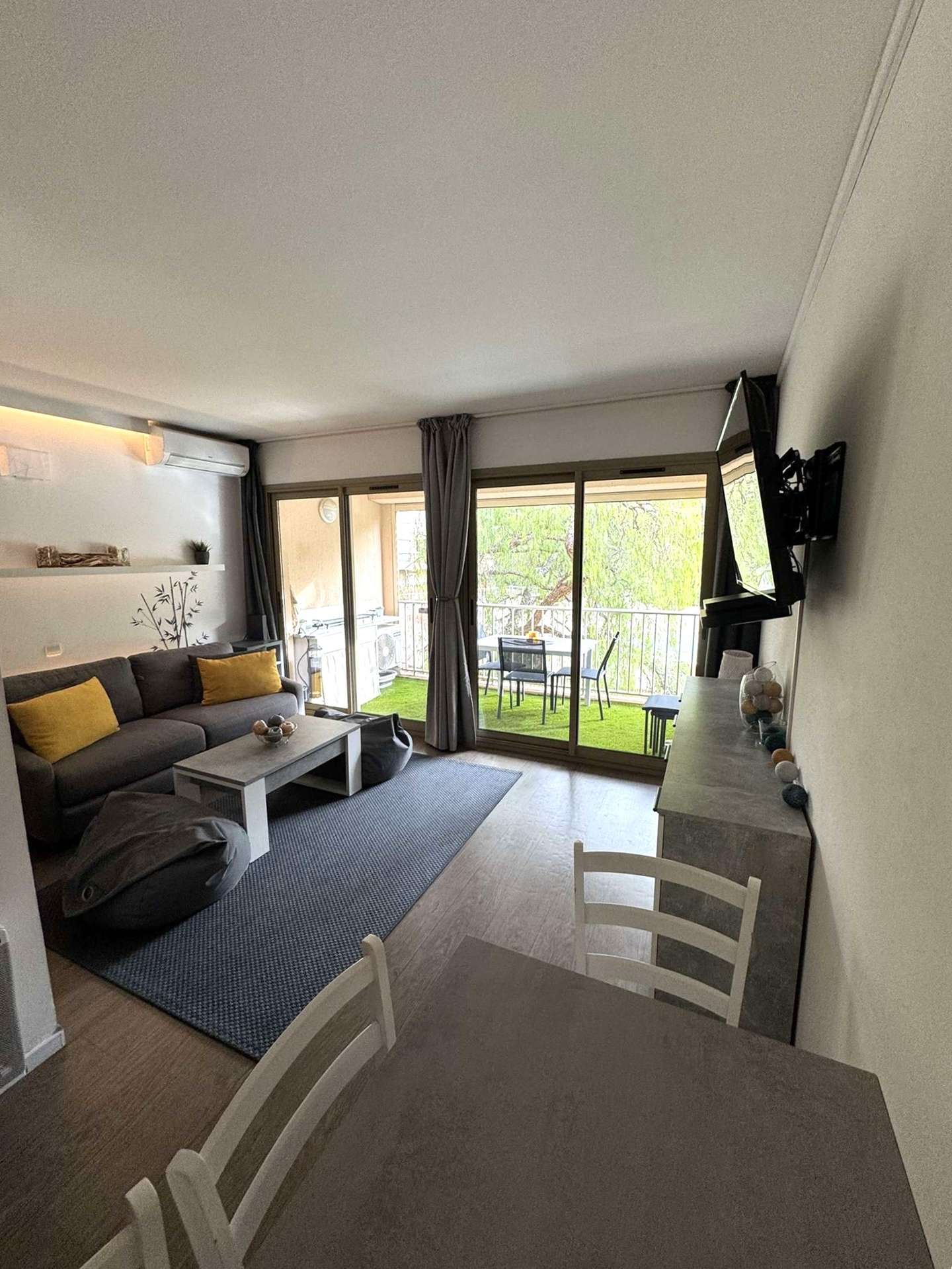 Il se compose d'une entrée, d'une pièce principale (séjour-salle à manger) composé d'un canapé lit ,une cuisine équipée donnant sur une terrasse, coin nuit avec lit superposés, salle de bain - Wc indépendant.
