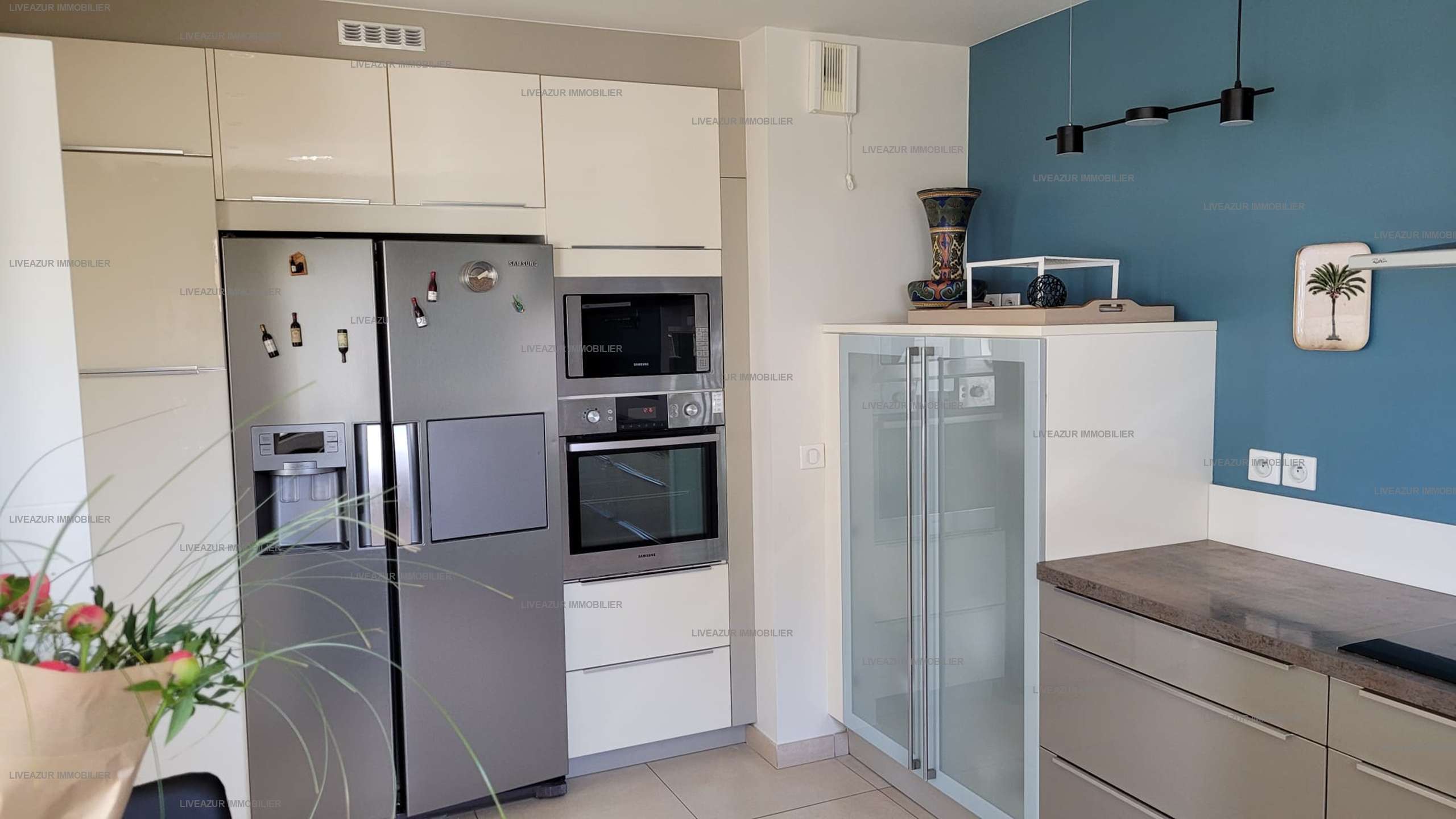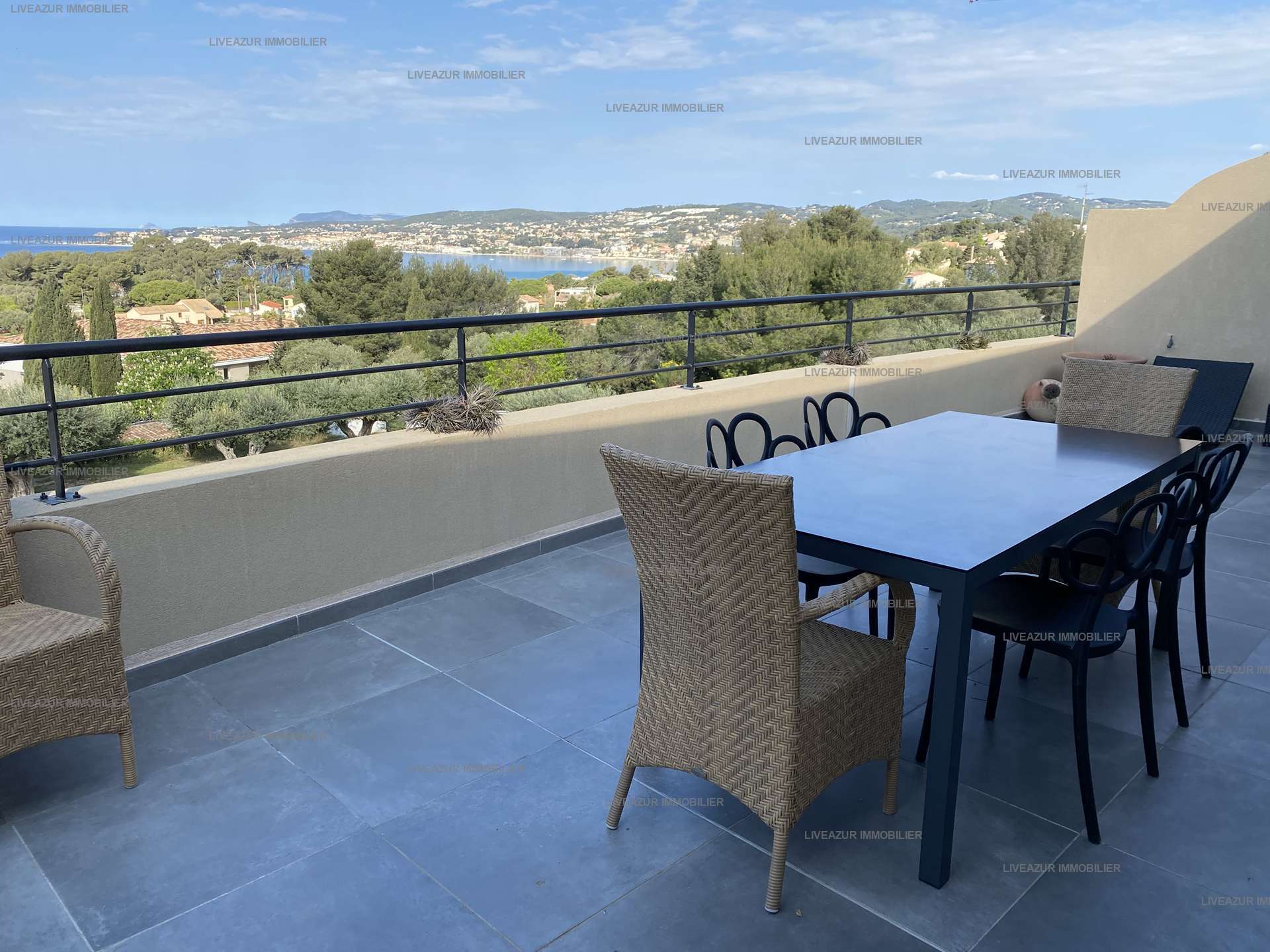 L'appartement de 140 m² se compose d'une entrée, d'une cuisine indépendante entièrement équipée, d'un salon - salle à manger le tout s'ouvrant sur une belle terrasse de 60 m² vue mer.