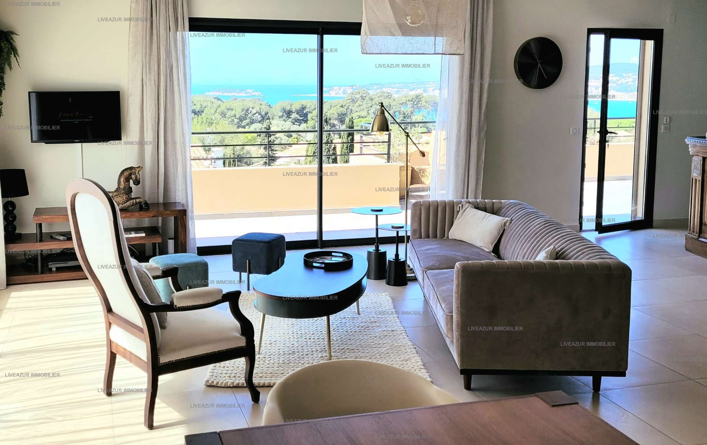 SANARY PLAGE LA GORGUETTE - Bel appartement climatisé Type 4 pour 6 personnes offrant une jolie vue notamment sur la mer dans une résidence avec piscine.