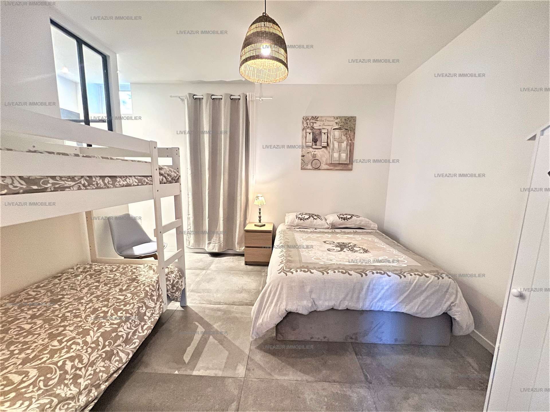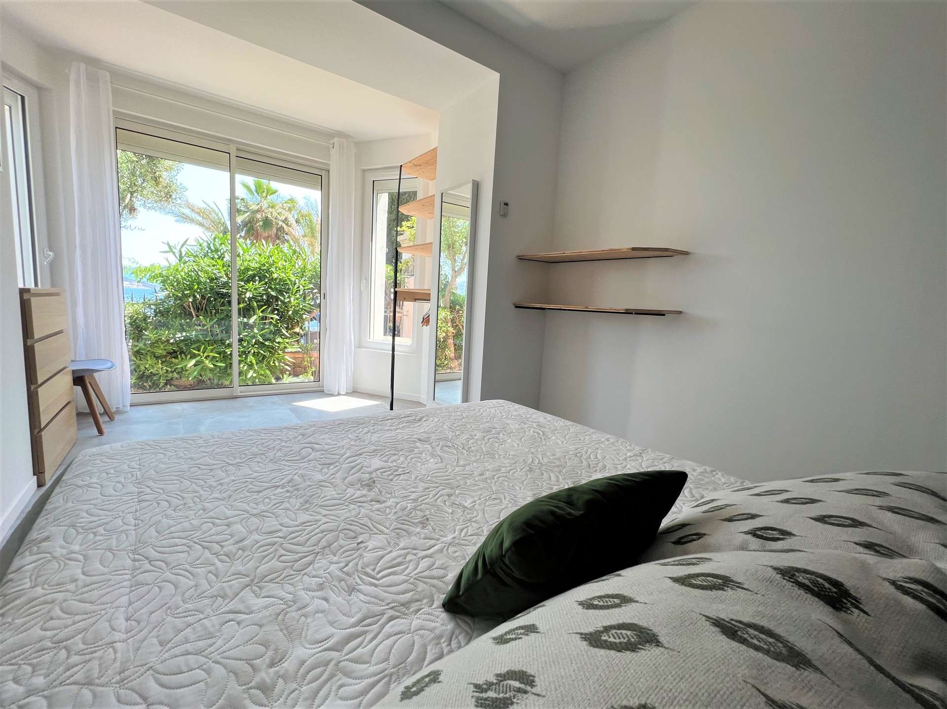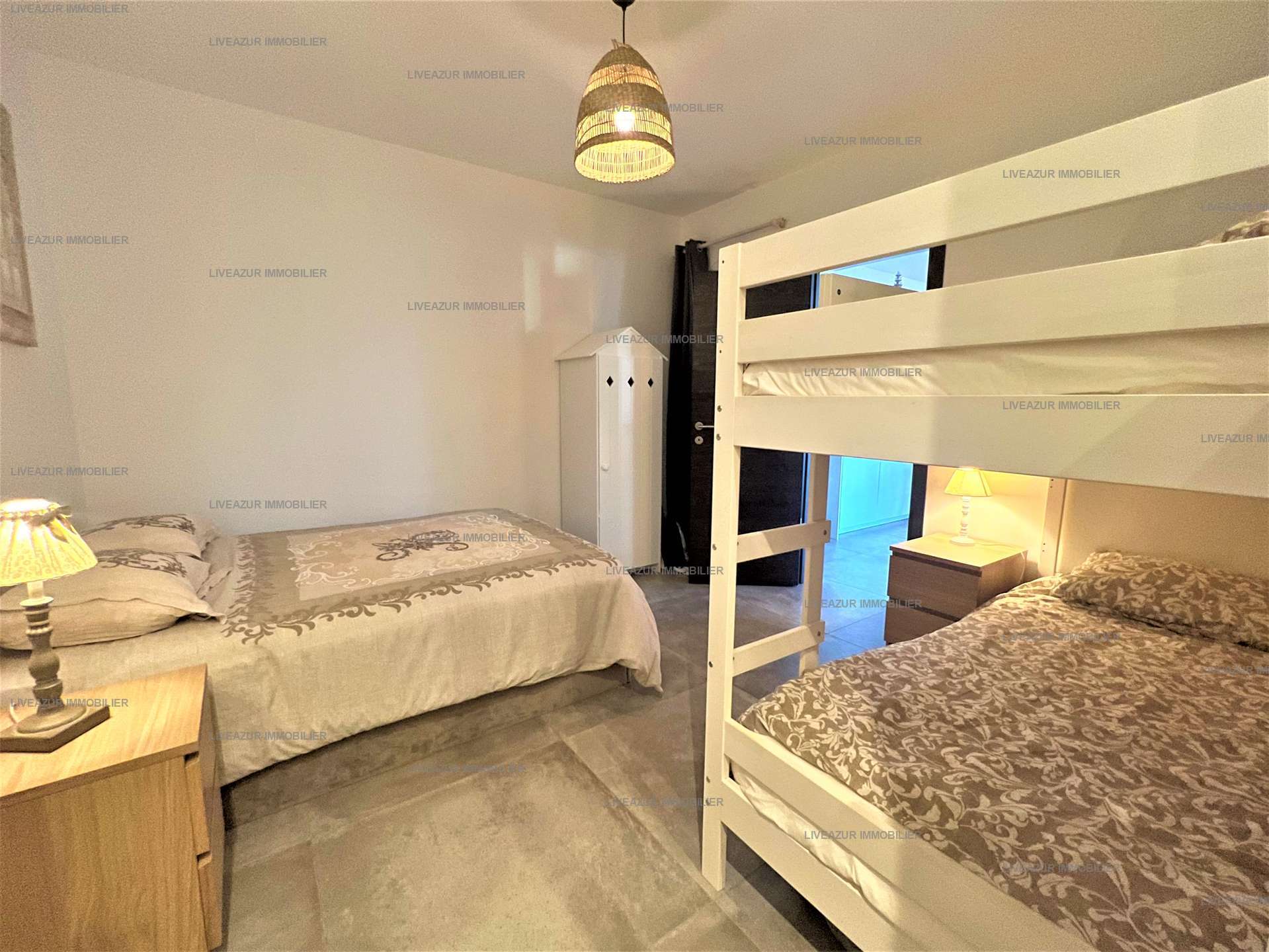 L'appartement, situé dans un cadre idyllique, se trouve au rez-de-chaussée de cette résidence sécurisée. Il est composé d'une entrée, d'une pièce à vivre avec un espace cuisine, salle à manger et le salon, le tout donnant sur une terrasse vue mer. L'espace nuit est composé de trois chambres, une chambre parentale vue mer avec un lit double 160 cm et salle d'eau, une avec lit double 140 cm et une avec lit gigogne (80*200). Une salle d'eau et une salle de bain.