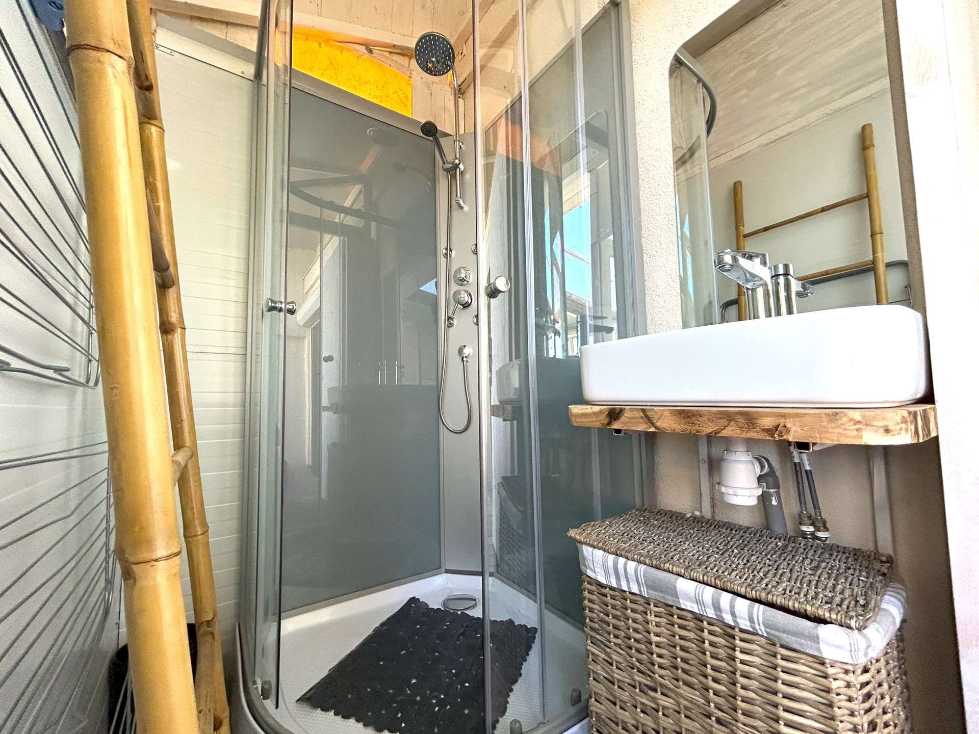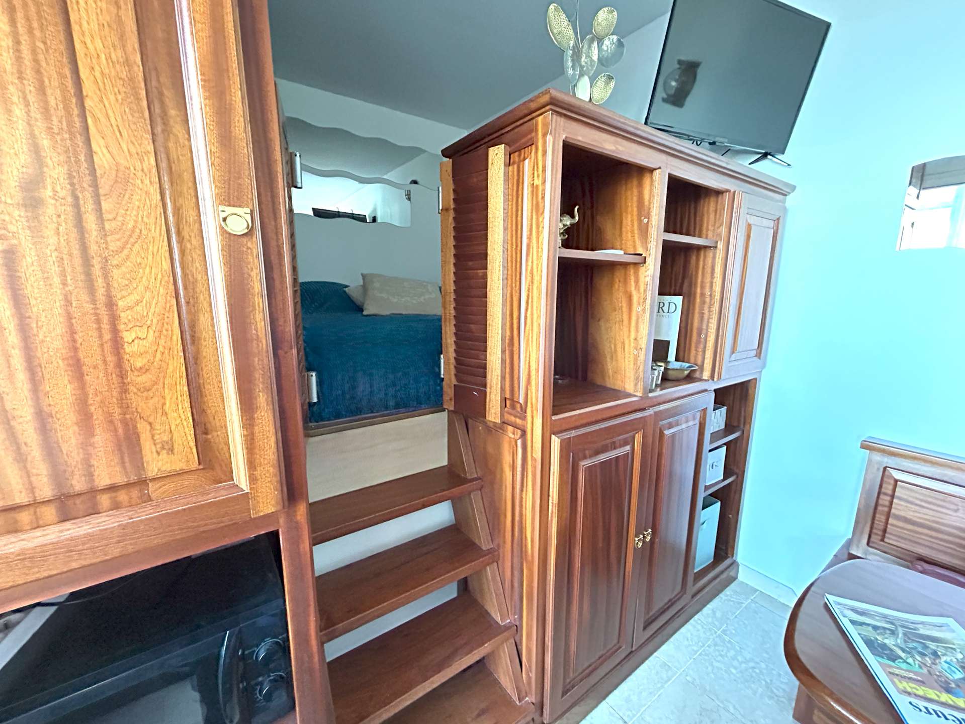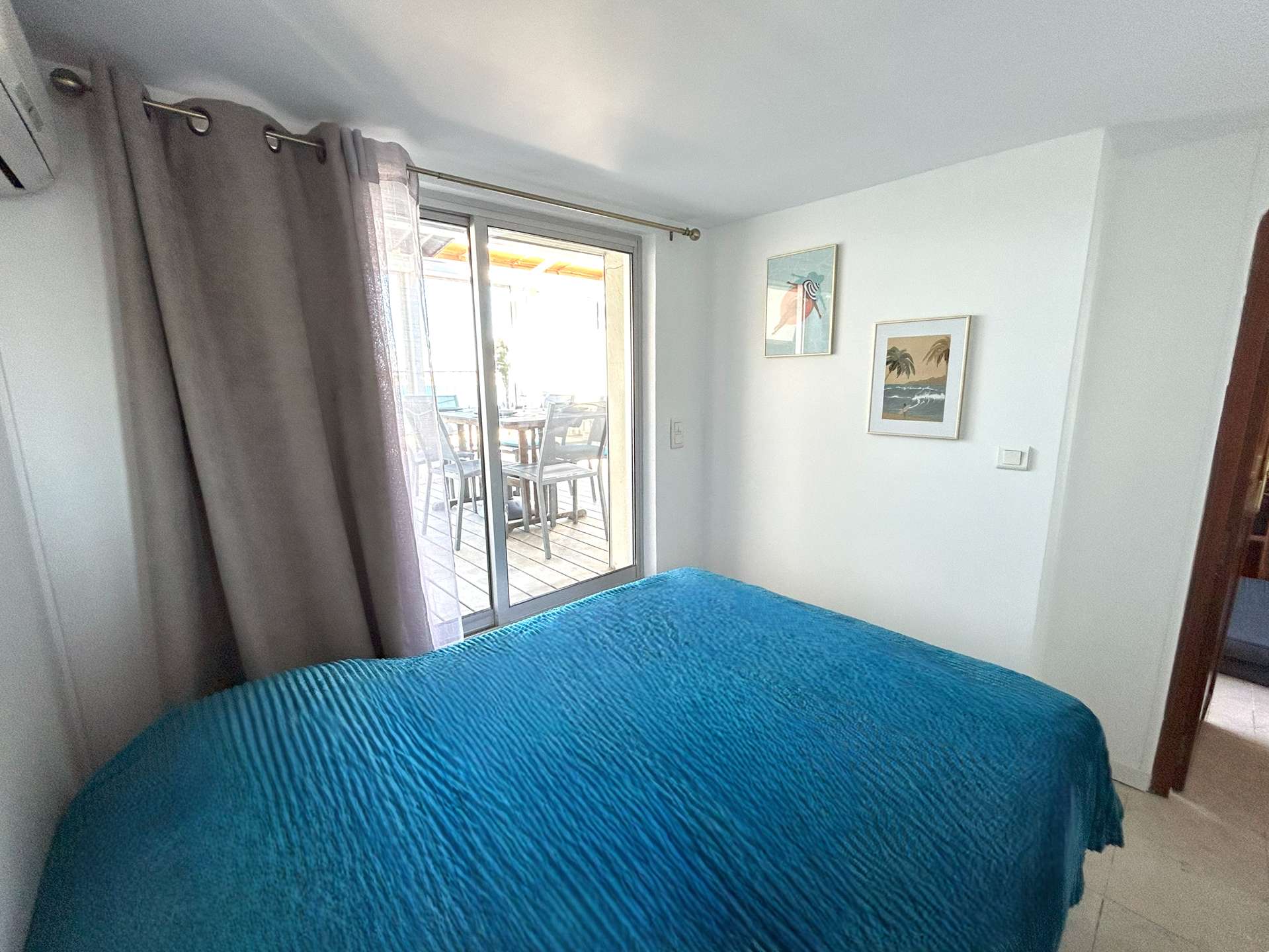 L'appartement de 35 m² se compose d'une cuisine équipée extérieur, d'un espace repas, le tout s'ouvrant sur une belle et grande terrasse face à la mer de 25m2. Côté nuit, vous disposez d'une chambre avec lit double en 140, une deuxième chambre avec lit gigogne (2x90) et une salle d'eau avec WC. De plus, un coint nuit mezzanine dans le salon avec un lit double en 180 et une deuxième salle d'eau à l'extérieur sur la terrasse.