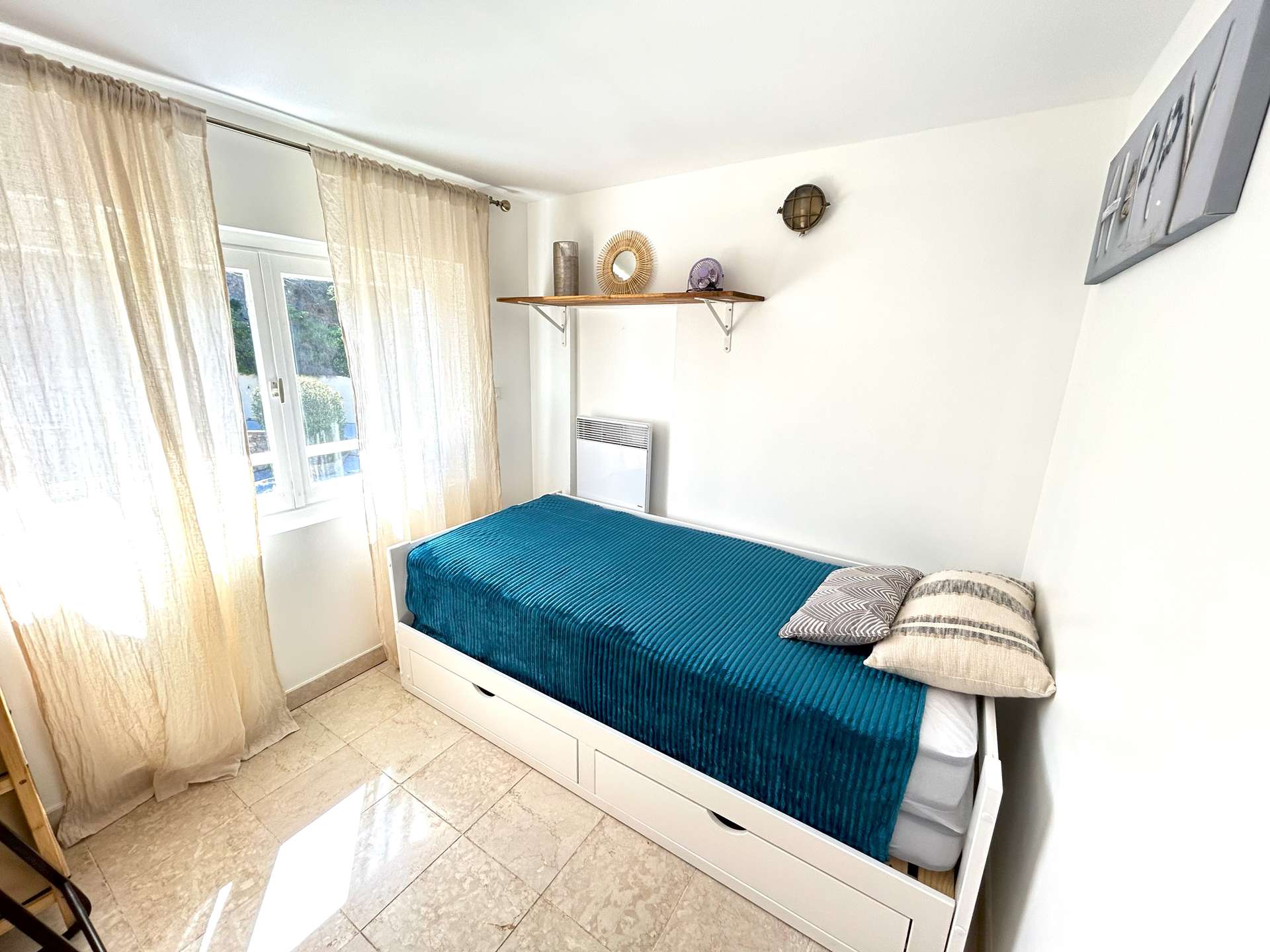 Vous êtes à mi-chemin entre le port de Sanary et Bandol, non loin des commerces de proximité. L'appartement offre calme et sérénité dans un cadre idyllique avec la mer comme panorama et la plage à vos pieds pour la journée. Les soirs d’été, vous pourrez profiter du marché artisanal nocturne.