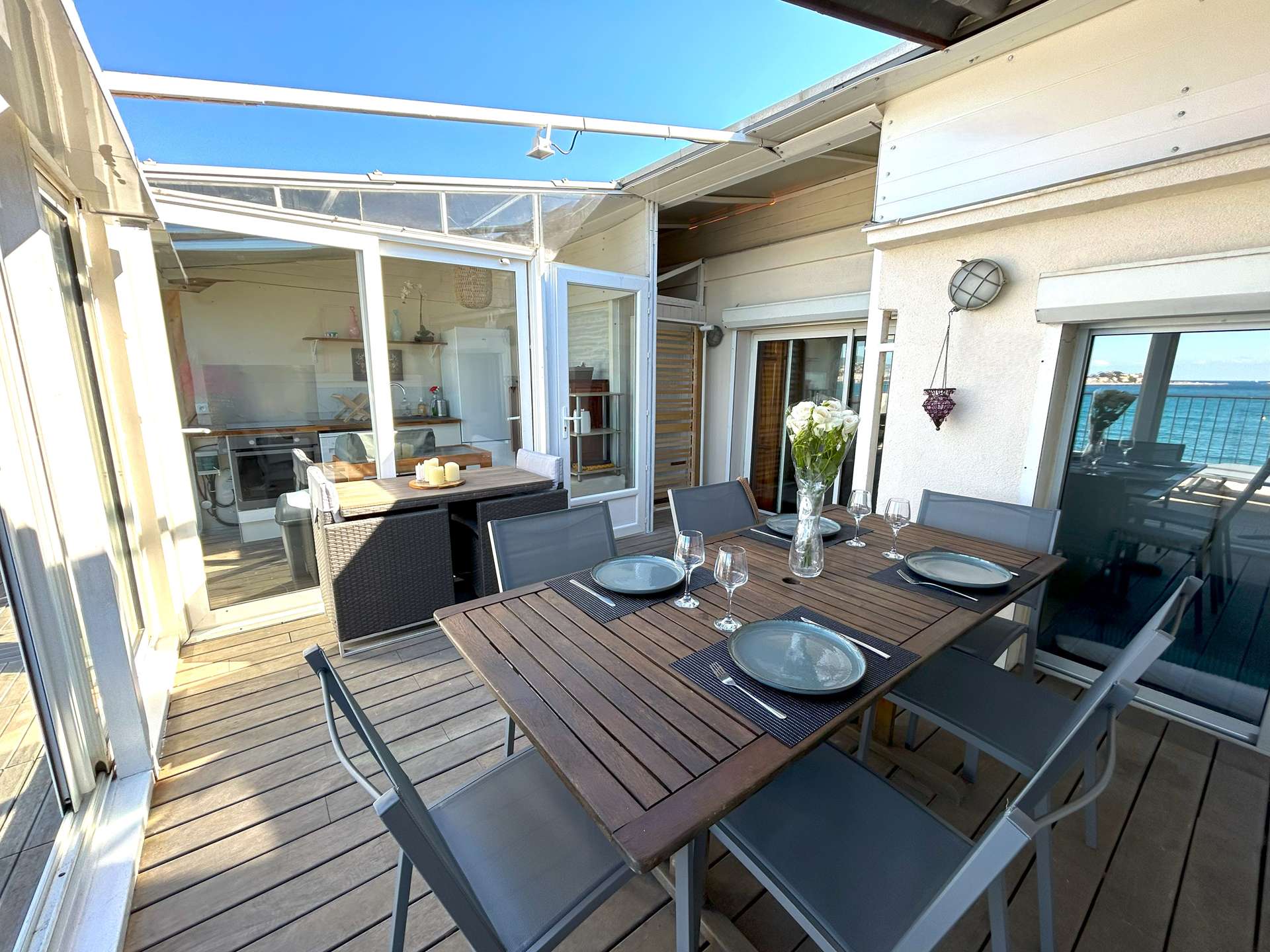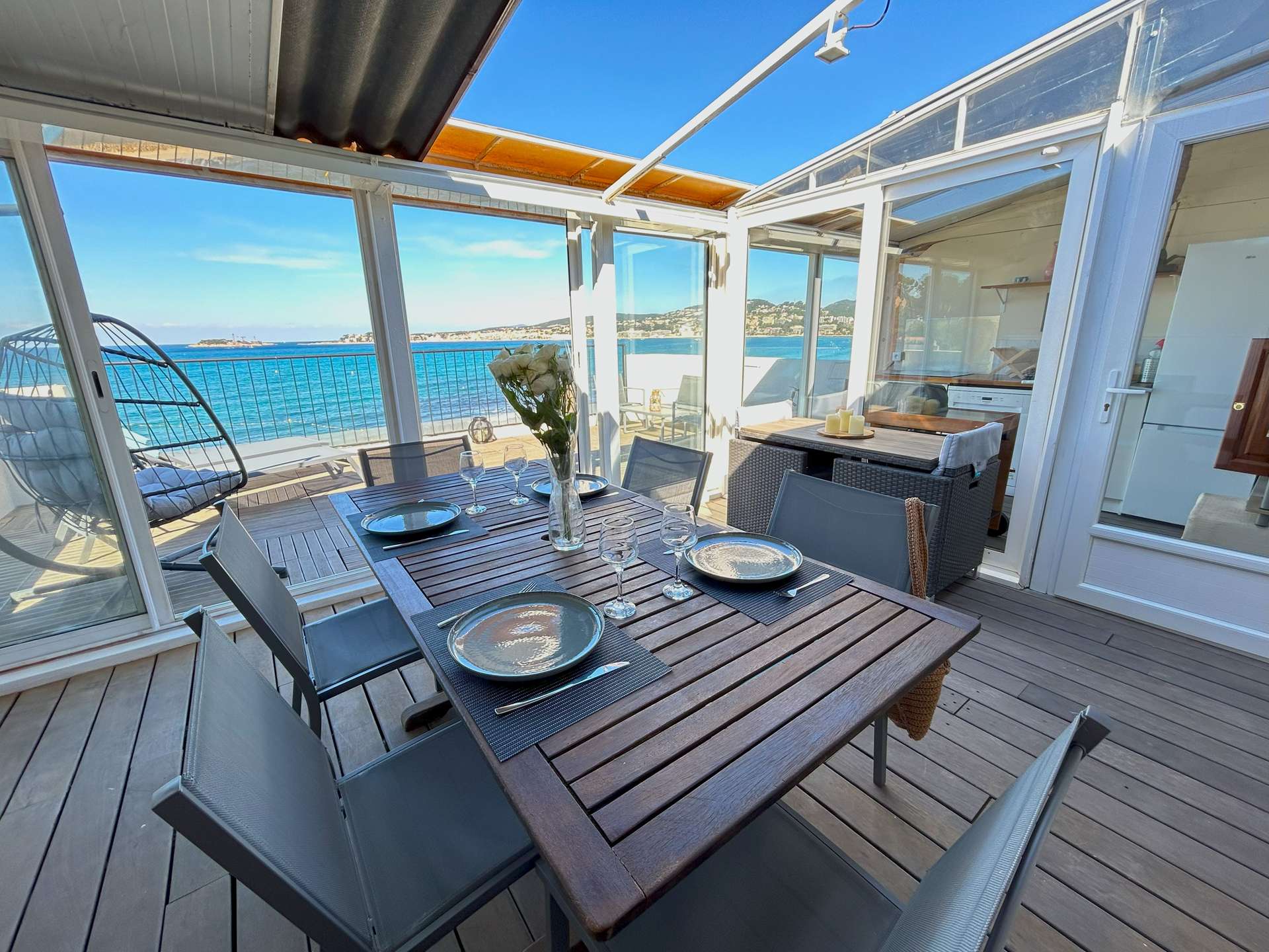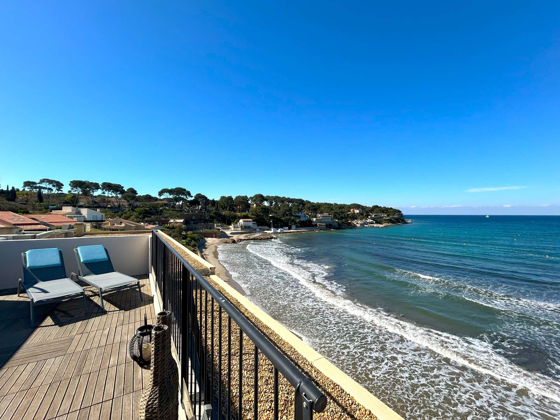 SANARY PIEDS DANS l’EAU- Appartement atypique Type 3 pour 5 personnes. Face à la mer, vous disposez d'une vue panoramique imprenable et d'une grande terrasse !