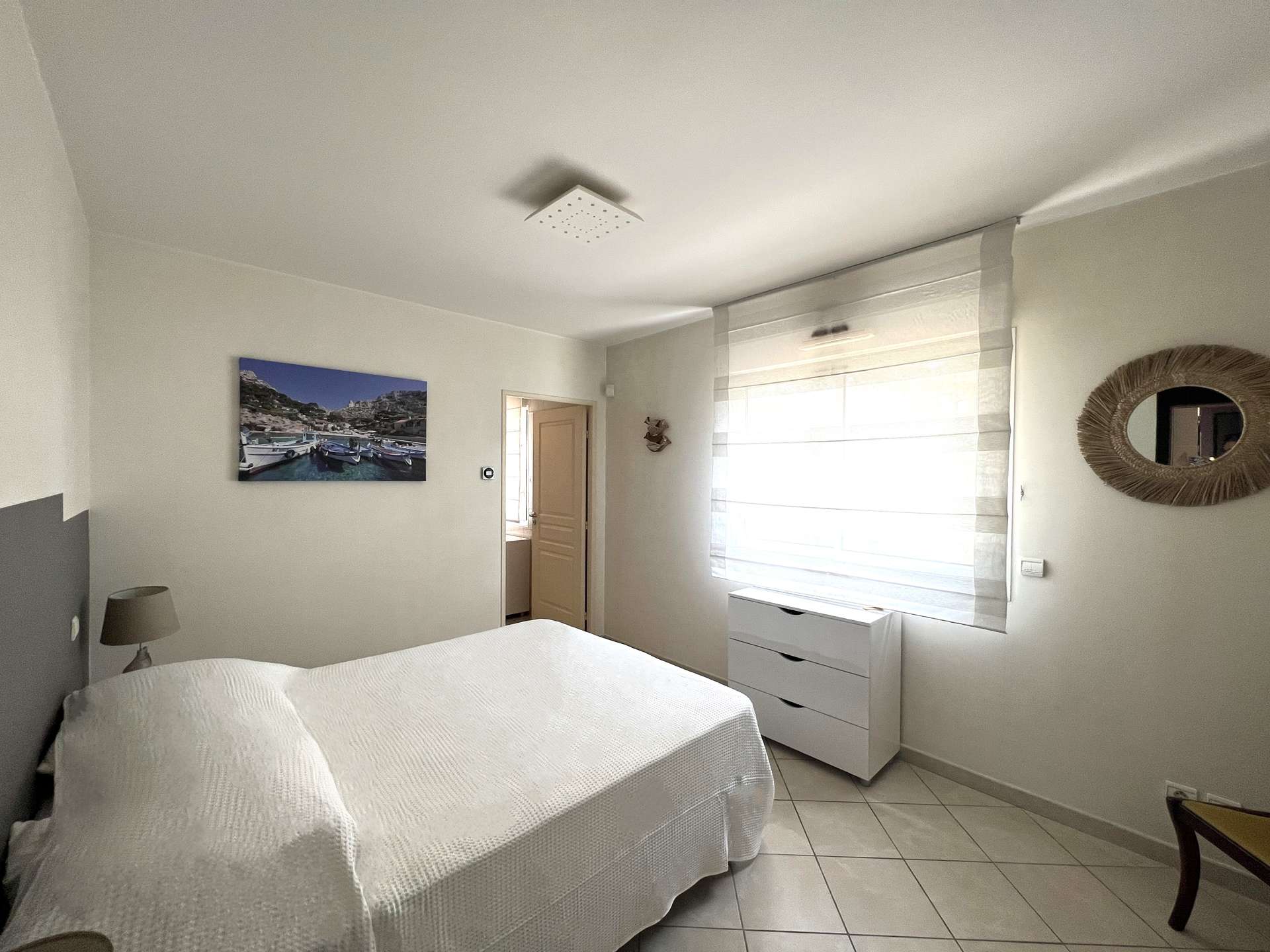 L'appartement se compose d'un salon TV/séjour avec cuisine ouverte totalement équipée donnant sur une très belle terrasse face à la mer.